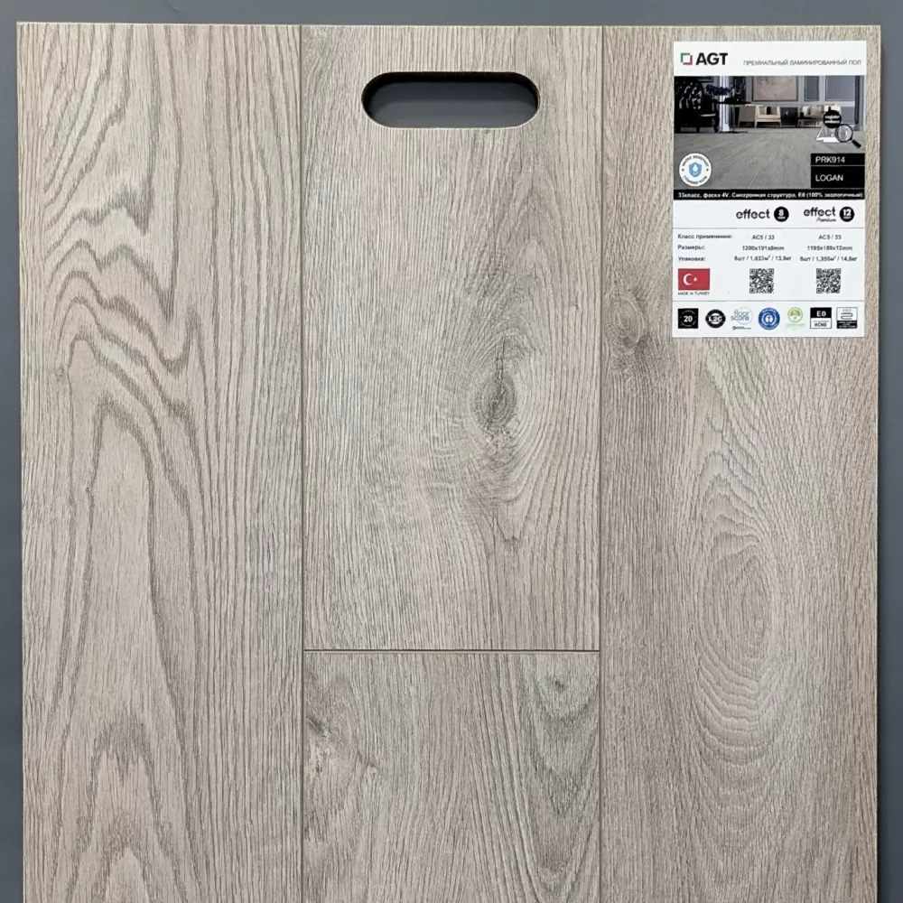 Ламинат AGT Effect Elegance 12-33 PRK 914 Логан 4V фаска, структура натурального дерева, влагостойкая панель ХДФ (древесноволокнистая плита высокой плотности), блеск поверхности - матовый. Можно заказать в интернет магазине в Москве по доступной цене. Данный влагостойкий товар 33 класса стойкости замечательно украсит любой проект квартиры, дома, дачи. Оплата: наличный и безналичный расчёт, возможна покупка в кредит. Доставка: Москва, Санкт-Петербург, другие города России.